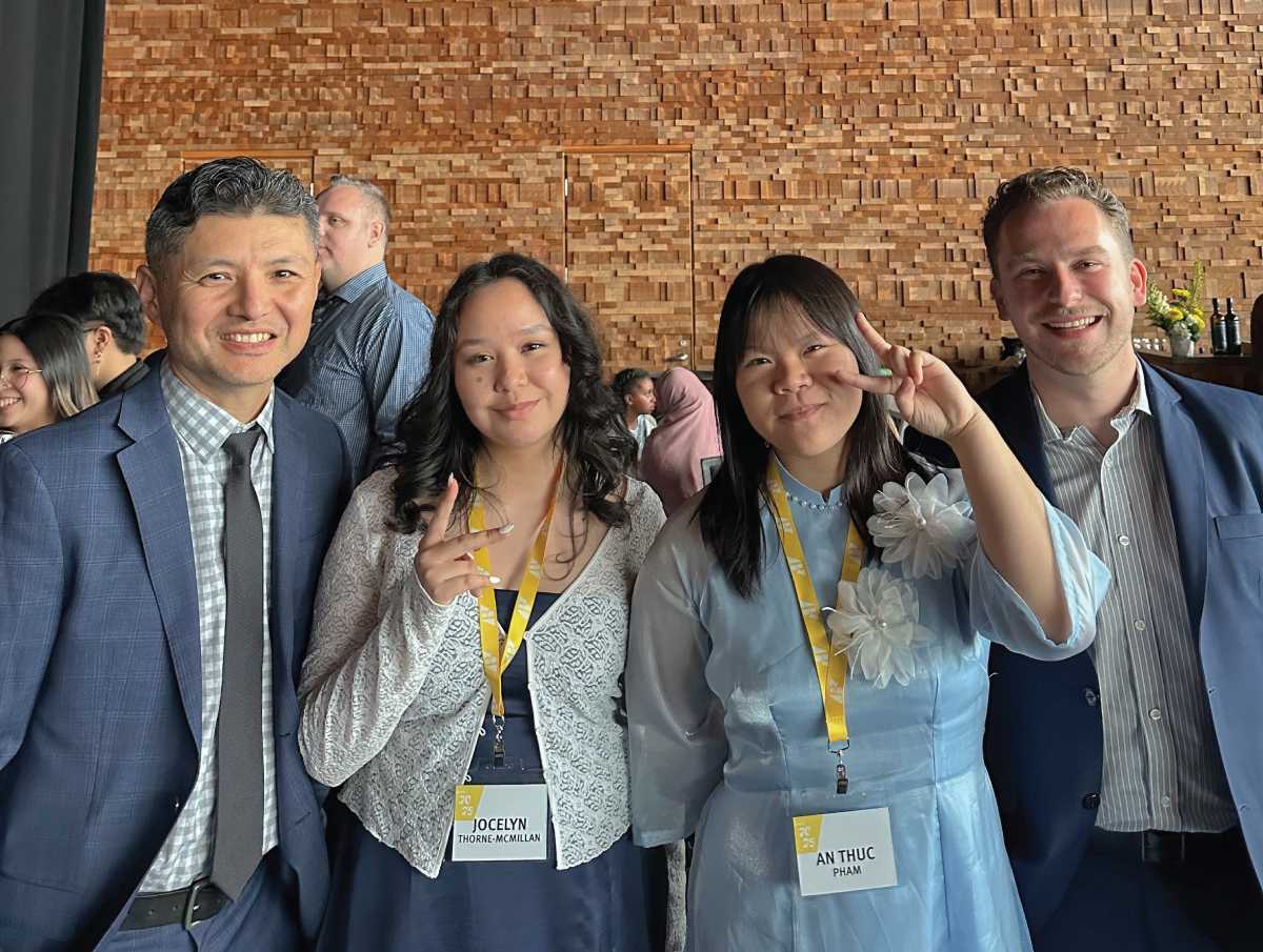 Jocelyn and An Thuc at the Beedie Luminaries “Night for Bright Minds” with Promise staff Ricky Lee and Daniel Breedveld (June 2025)